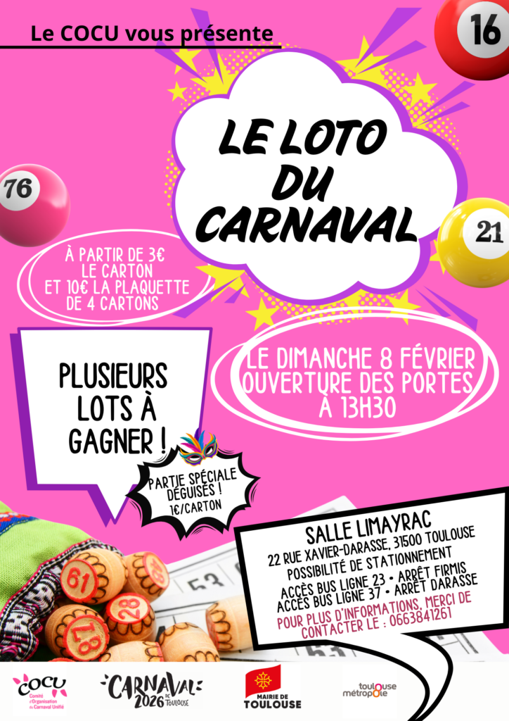 Rendez-vous dimanche 8 février à la Salle Limayrac dès 13h30 pour tenter votre chance et passer un moment chaleureux et festif 💃🕺