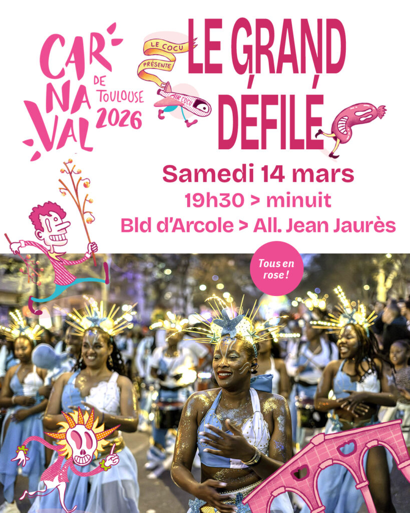 Tous les samedis après-midi, de l’Épiphanie jusqu’aux Jours Gras, la ville entre dans un temps de réjouissance collective. Des musiciens et danseurs investissent les quartiers de Toulouse pour faire résonner pas de danses, voix et percussions venues du monde entier.
